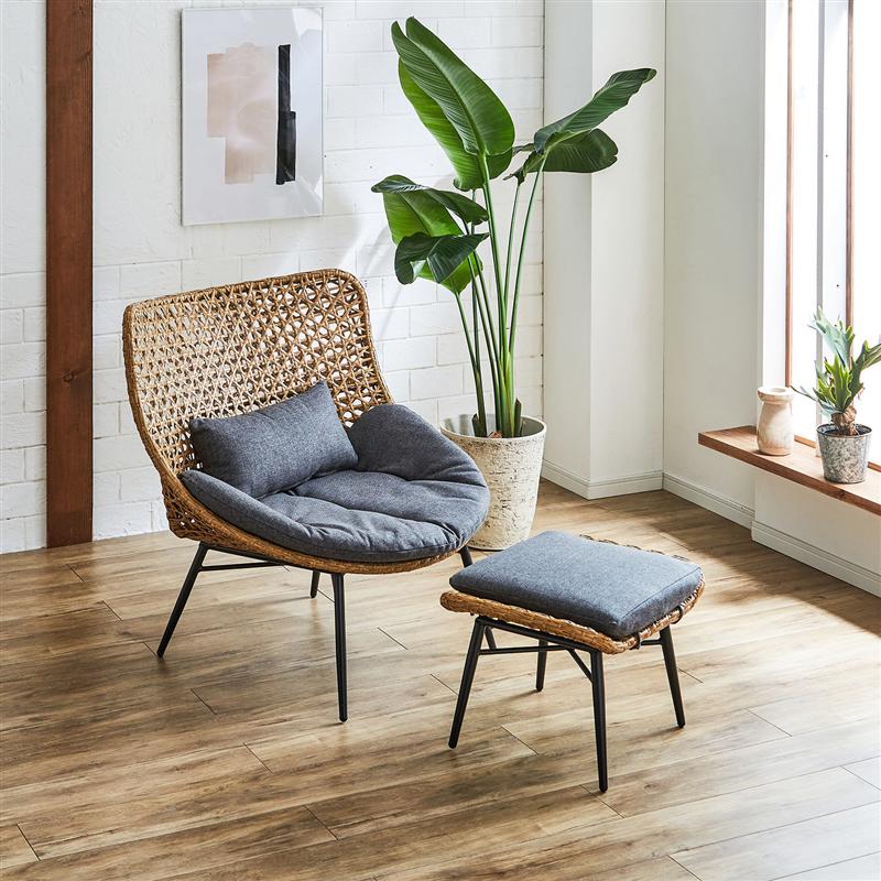 公式 一人 パーソナル 一人 収納 チェア チェア イス チェア 家具 インテリアのベルメゾン ベルメゾン リラックス 椅子 ラタンデザインのクッション オットマン付きパーソナルチェア 家具 インテリアのベルメゾン いす 家具 1人 店